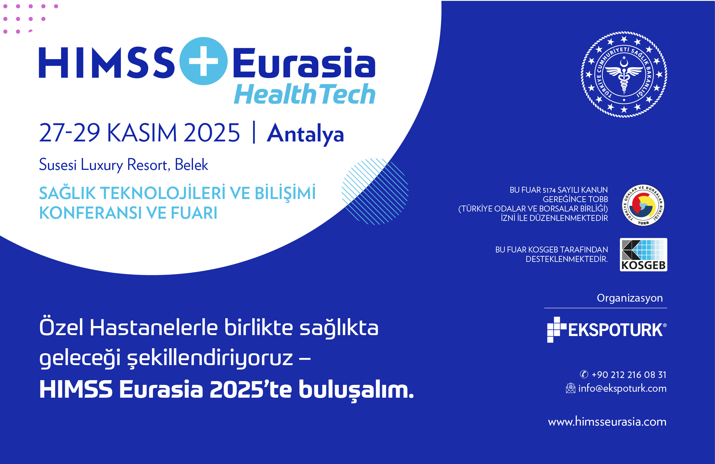 Dünyanın en prestijli sağlık bilişimi ve teknolojileri buluşmalarından biri olan HIMSS + Eurasia, bu yıl Antalya’da sağlık profesyonellerini, karar vericileri, teknoloji liderlerini, özel hastaneleri ve kamu temsilcilerini bir araya getirecek.