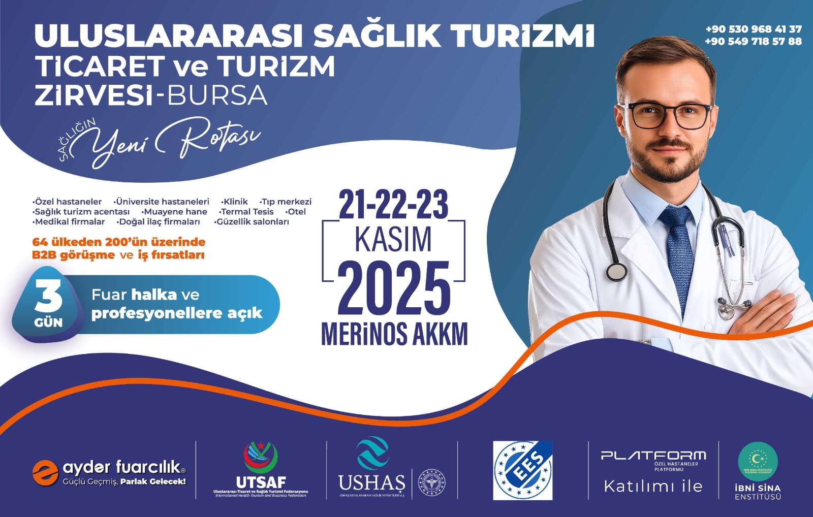 AYDER GRUP organizasyonuyla gerçekleştirilecek olan “Uluslararası Sağlık Turizmi, Ticaret ve Turizm Zirvesi”, 21-23 Kasım 2025 tarihlerinde Bursa’ da gerçekleştirilecektir.